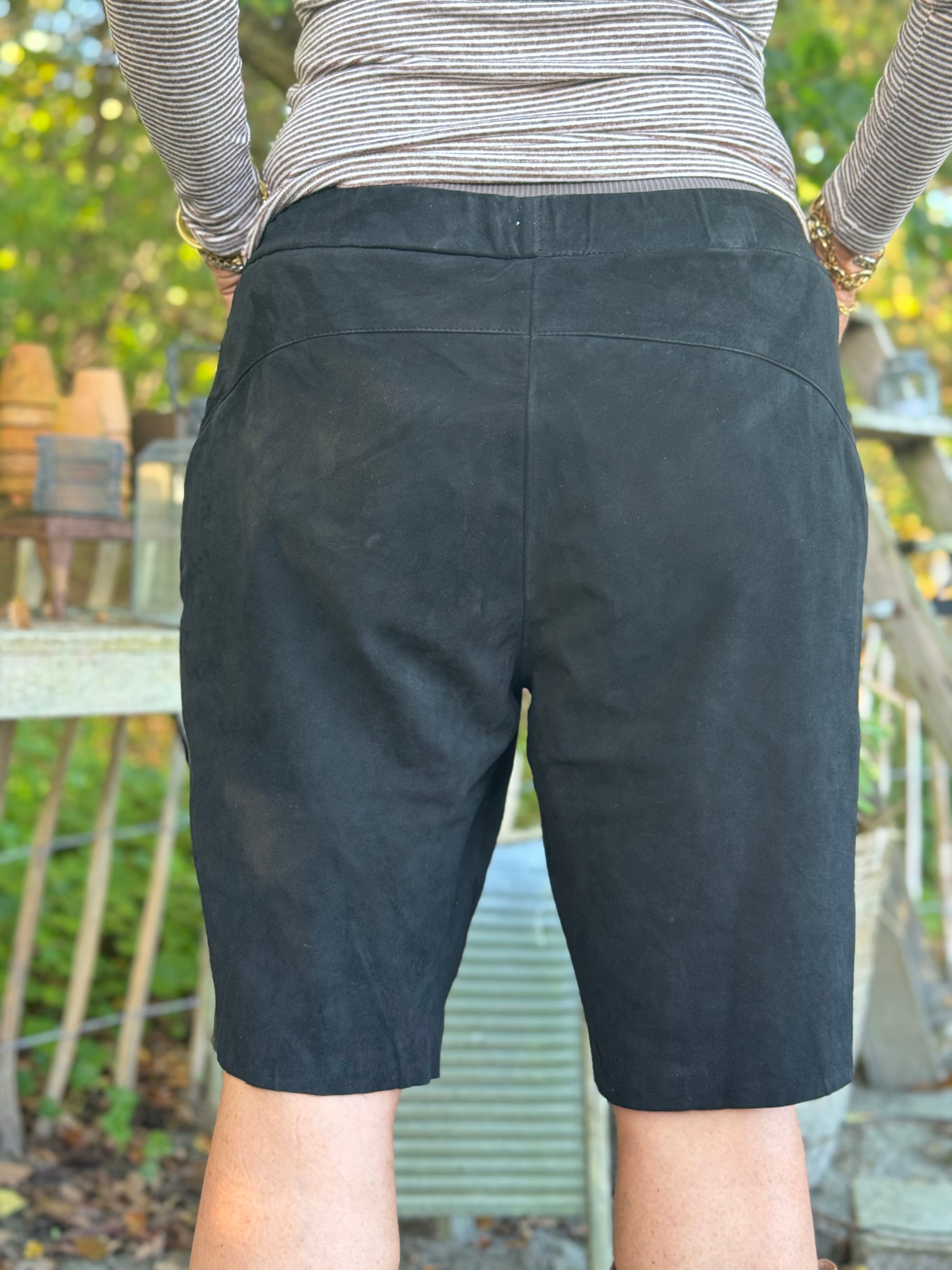 Denne lækre shorts i det blødeste ruskind er et must have i garderoben. Shortsene har elastik bagpå i taljen, med en fin lille rynkeeffekt, hvilket giver dem et behageligt fit. Shortsene har et løstsiddende design med lommer i begge sider.