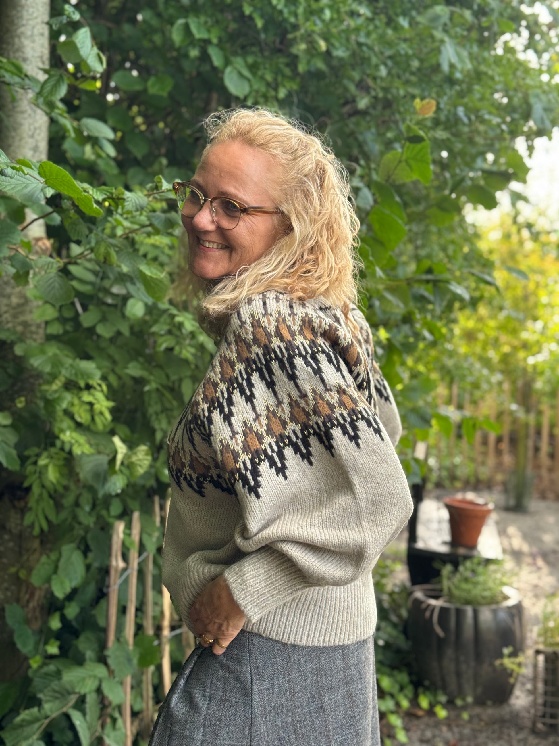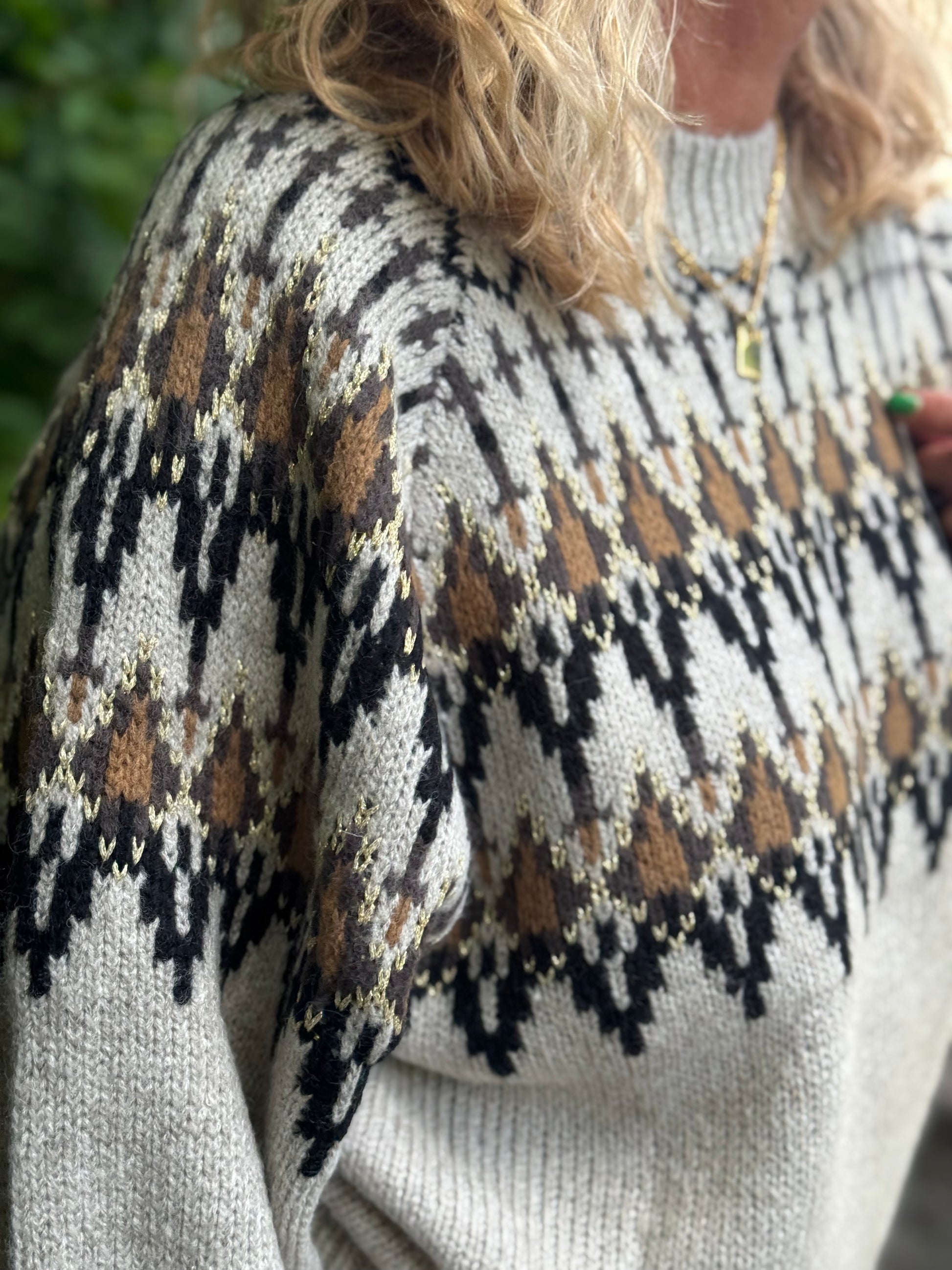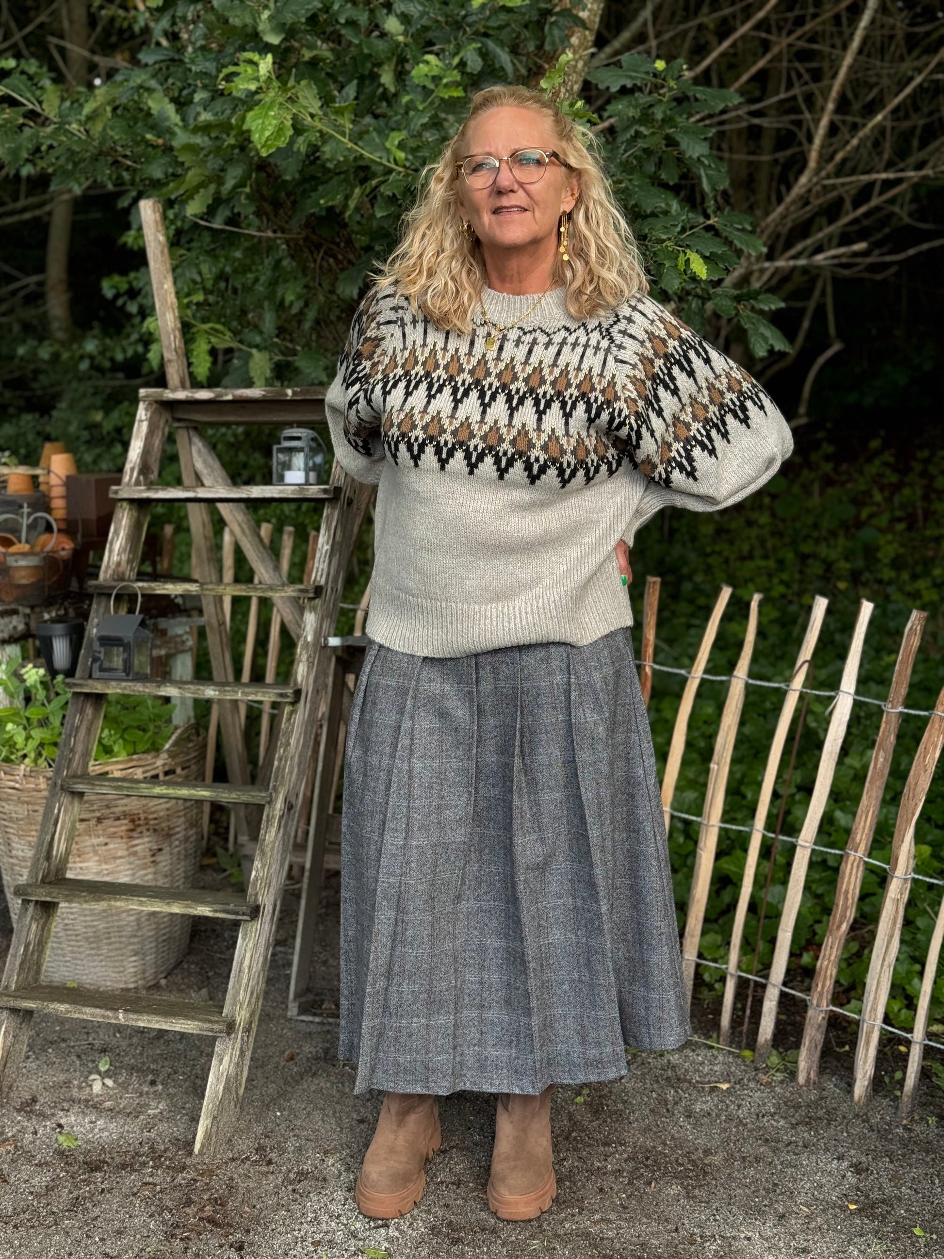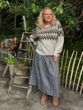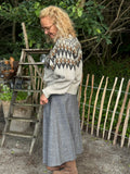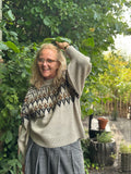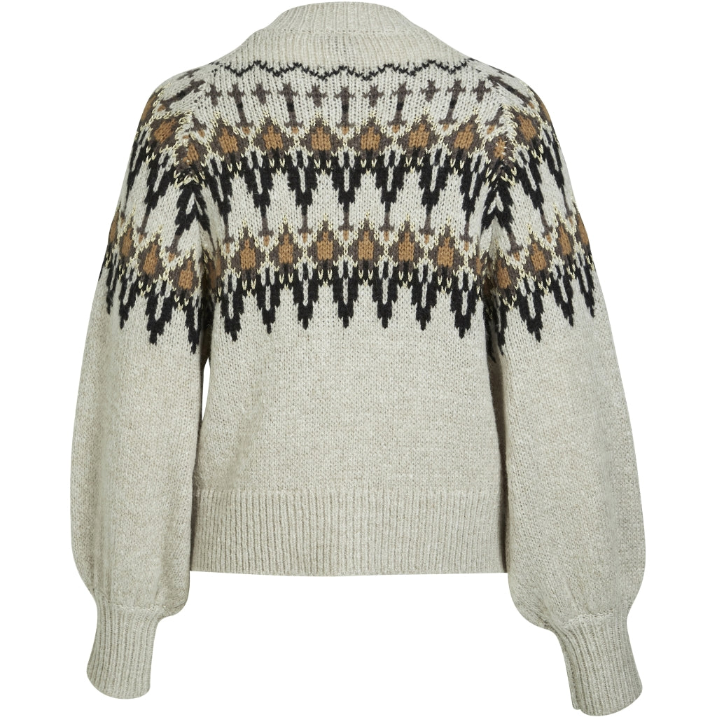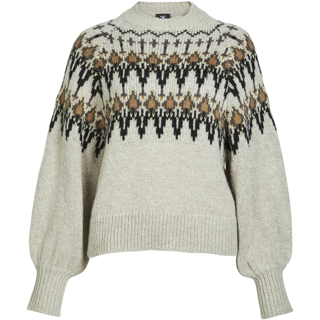 Med denne lækre strik fra Nü Denmark får du en strik i den smukkeste farvekombination, med et klassisk mønsterstrik henover brystet. Strikken har en rund hals, og lange ærmer som er let ballonformet.
