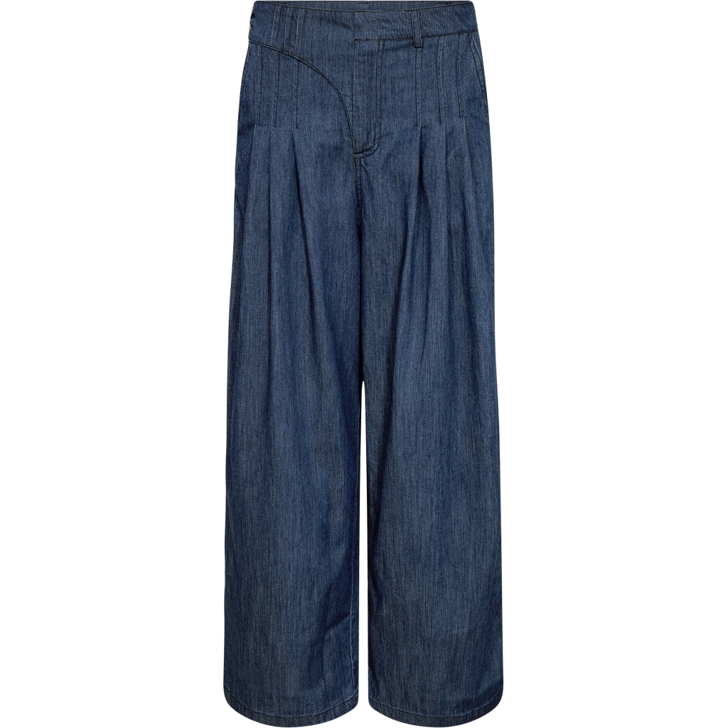 Disse lækre bukser fra Nü Denmark er mere end bare et par bukser med sine lækre detaljer. Bukserne har en mellem højtalje som er fyldt med lækre detaljer, som slåom effekten med knapper i siden og på syet læg - som gør at den falder utroligt flot. Den har skrålommer i siderne og vidde i benene.