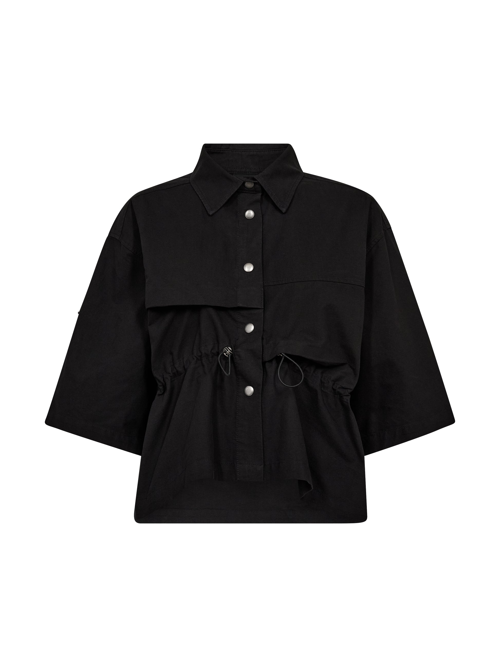 Denne fine skjorte fra Nü Denmark er et must have da det ikke er en klassisk skjorte. Den har den klassiske skjorte krave, men derudover der fyldt med anderledes detaljer, som bindebåndet i taljen og de korte ærmer som kun rulles ned.
