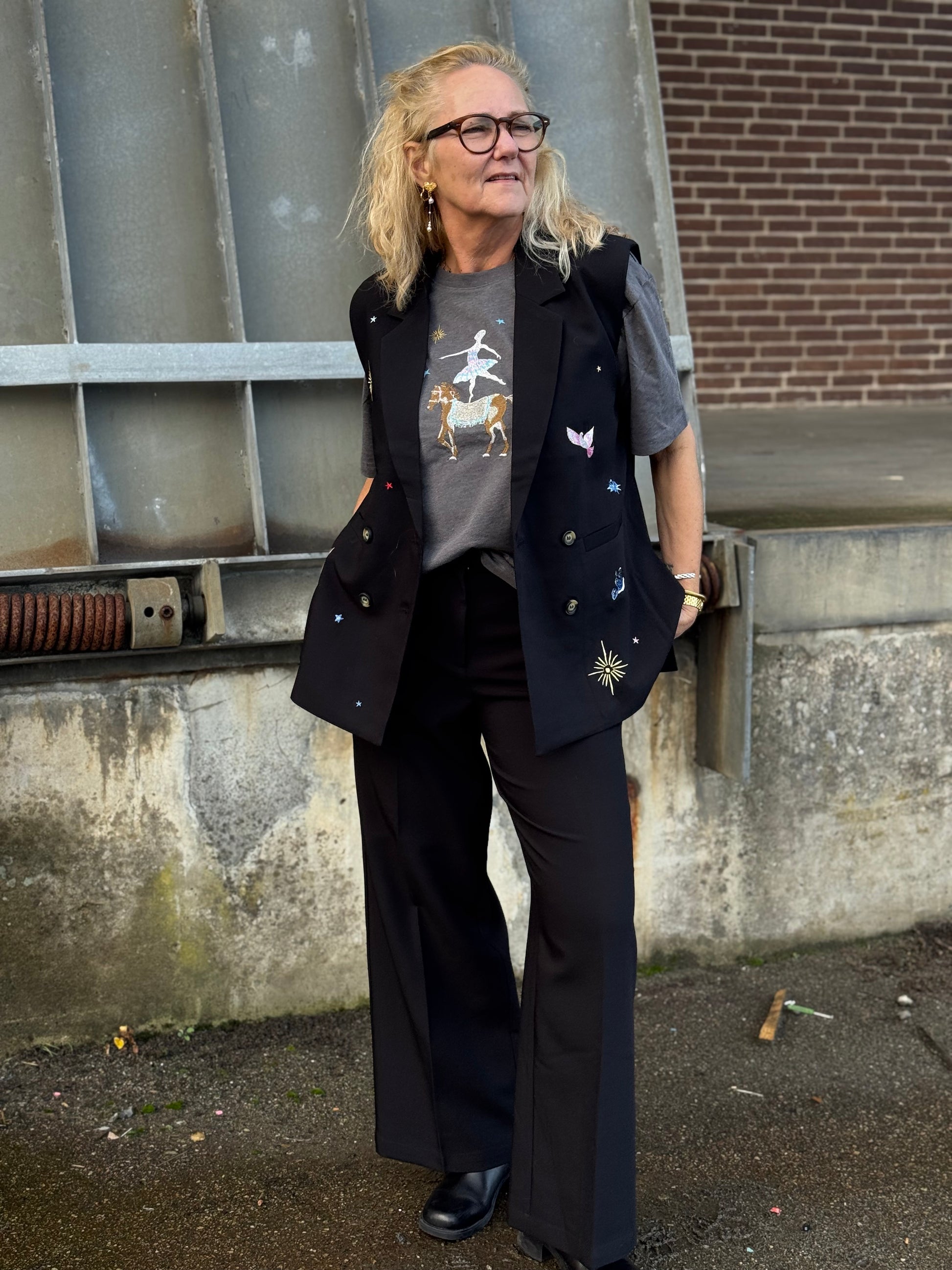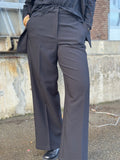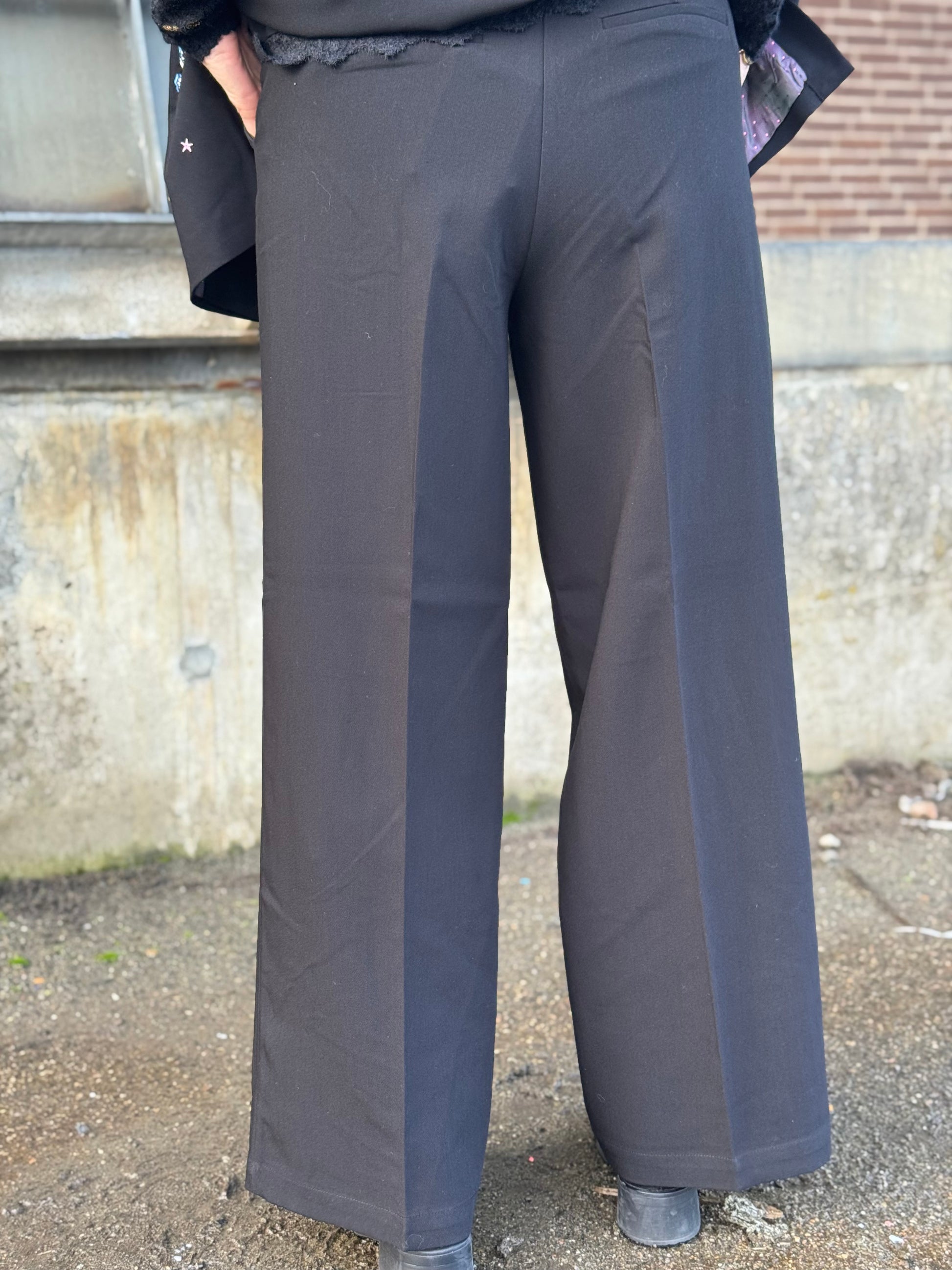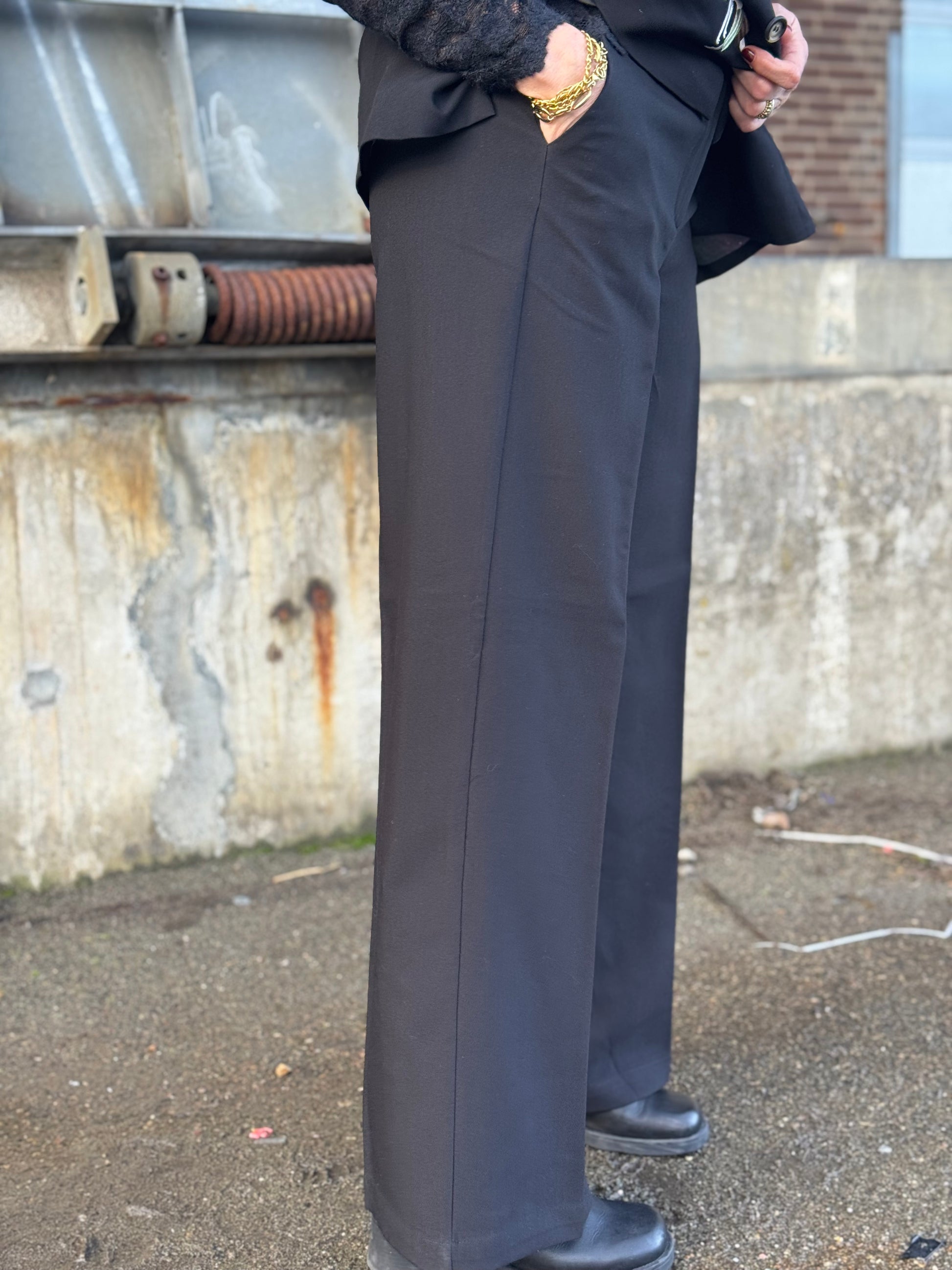 Denne lækre habitbuks fra Nümph er et rigtigt statement-piece i garderoben med sine bredde ben. Bukserne er højtaljet med fastlinning, skjult knaplukning og bæltestropper.