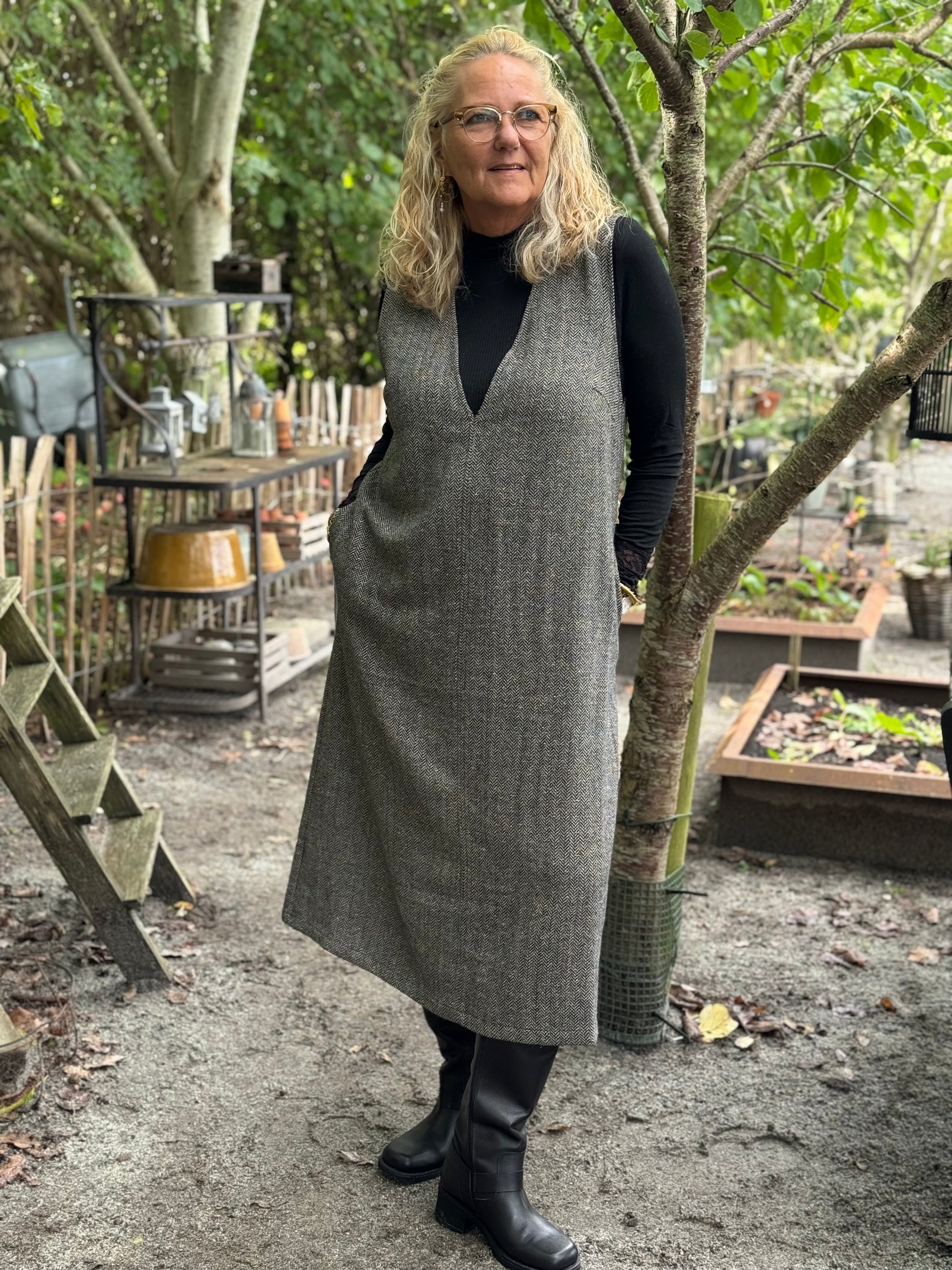 Denne cool kjole fra Nümph er et rigtigt statement-piece i garderoben. Kjolen har en dyb v-udskæring foran, bredde stropper og lommer i siden. Kjolen har en midi længde.