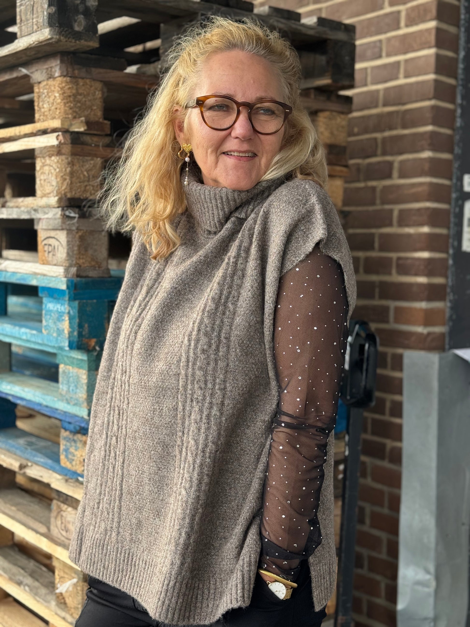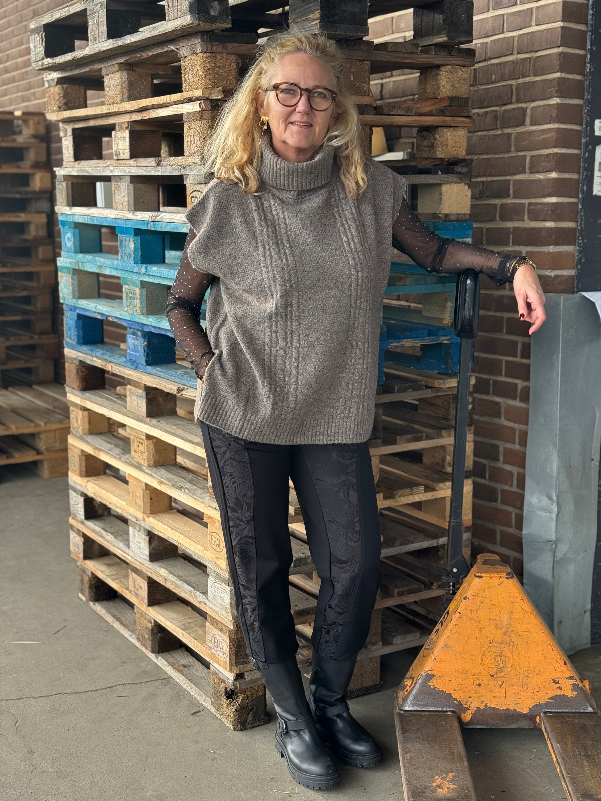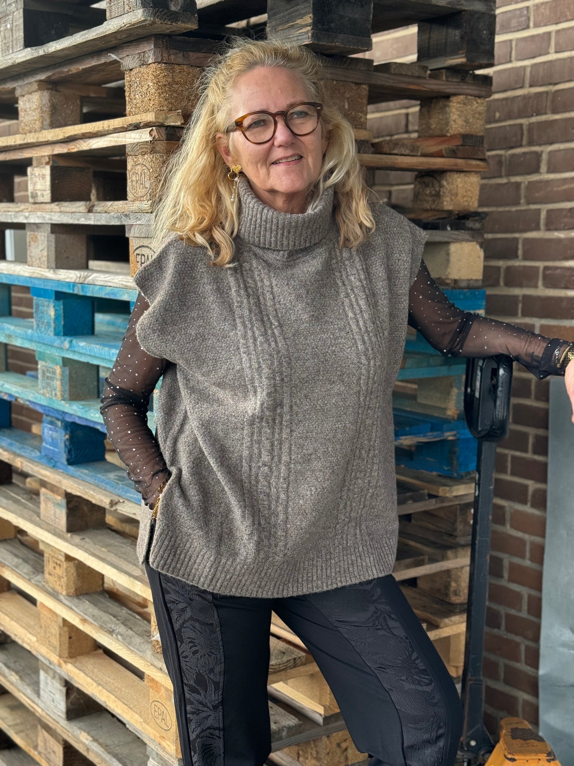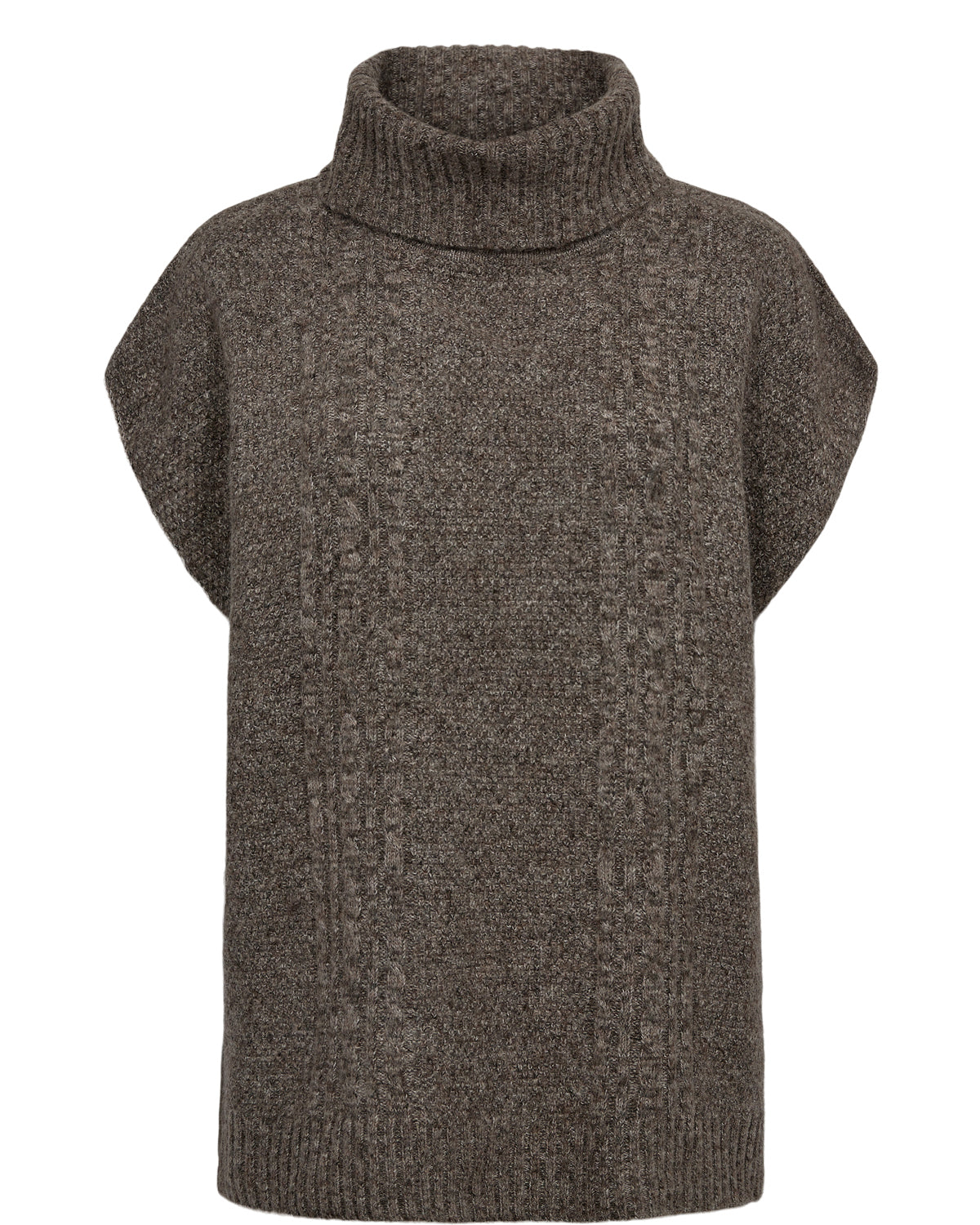 Denne lækre poncho Nümph er i det lækreste materiale. Strikken har en rullekrave hals og korte ærmer.