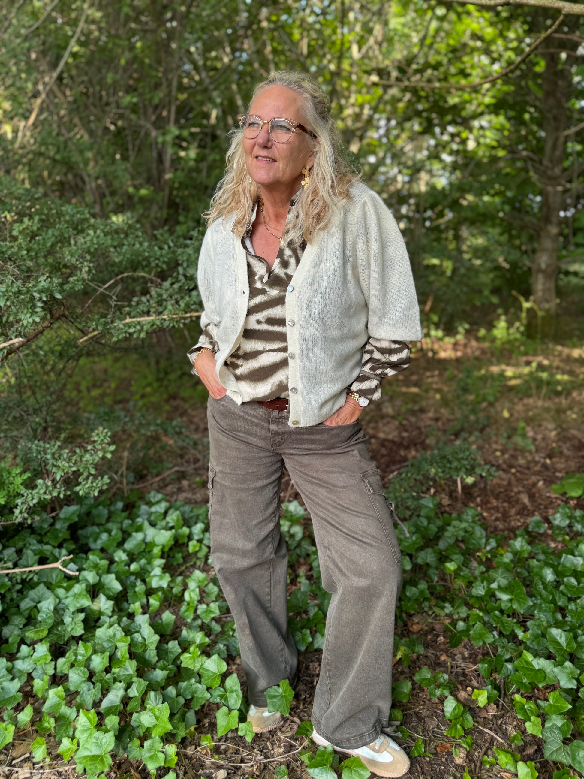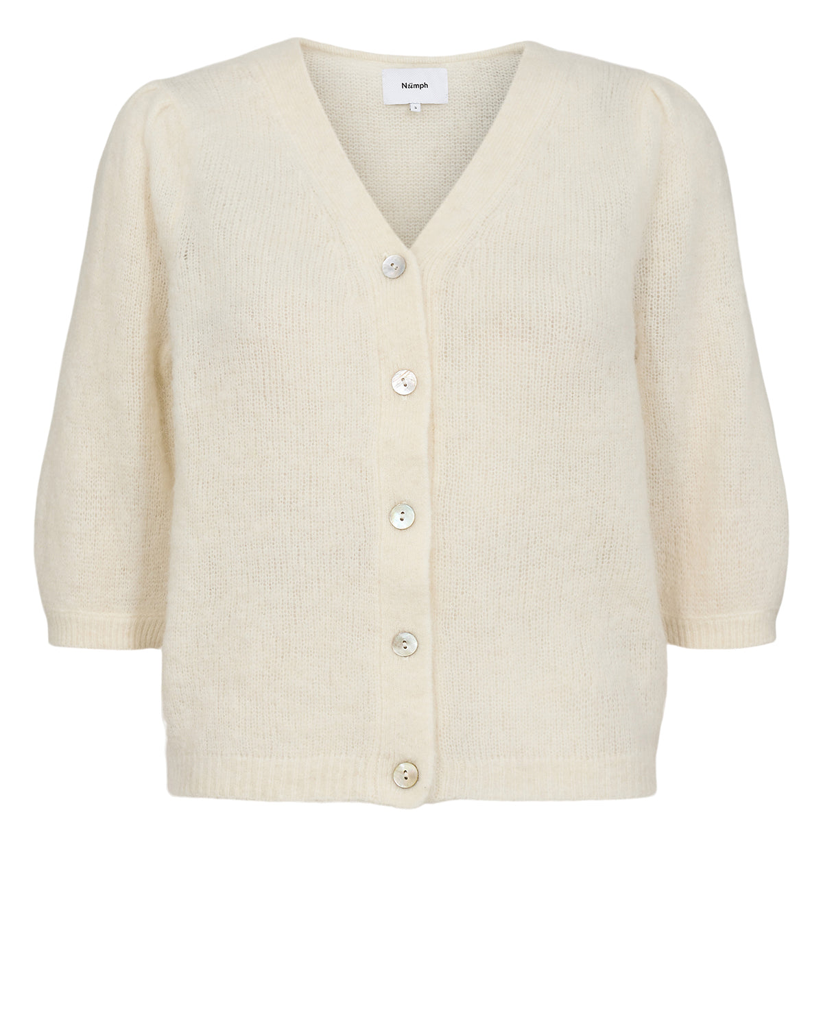 Fin og enkelt cardigan fra Nümph i den lækreste kvalitet. Cardiganen har V-udskæring og lukkes med de smukkeste knapper. Den har trekvarteærmer med et lille rib stykke.
