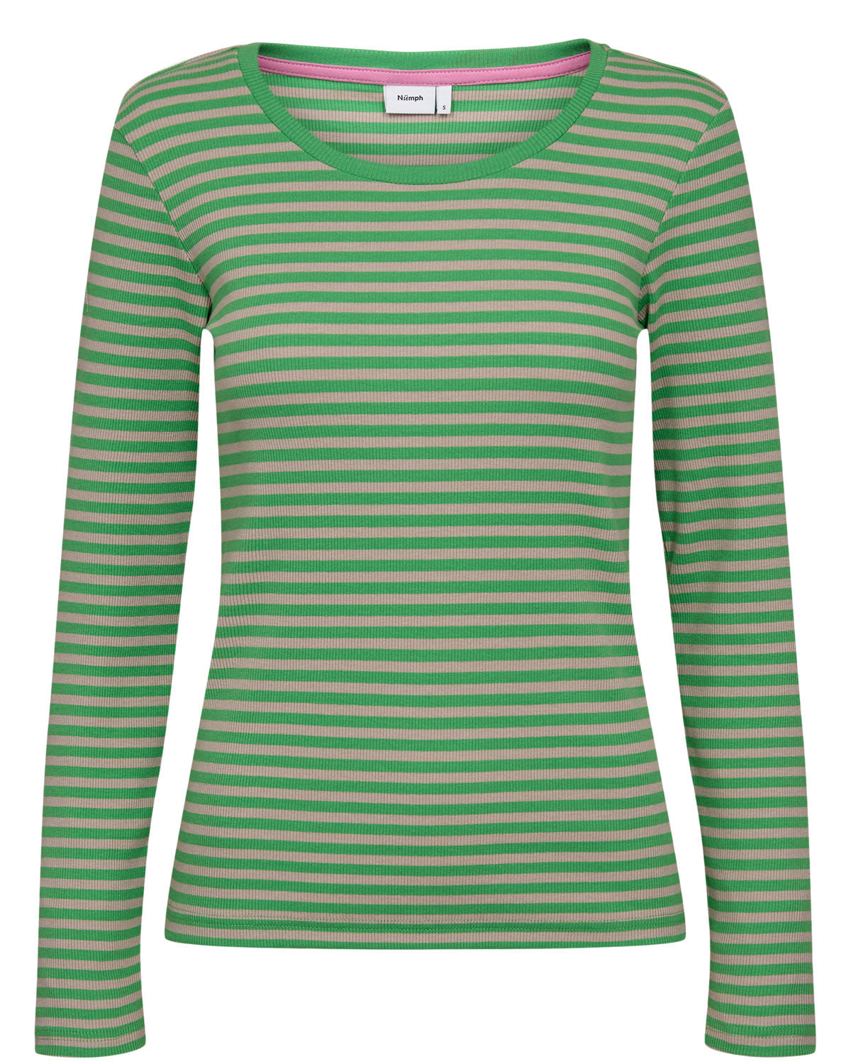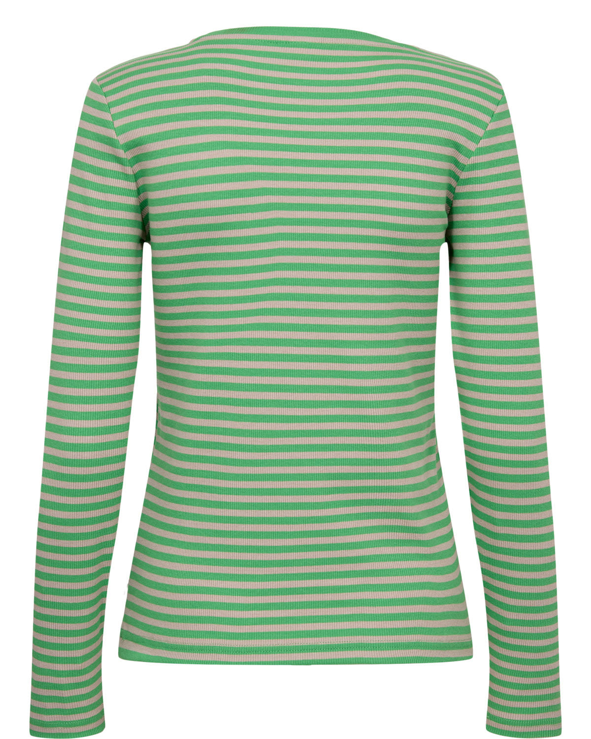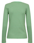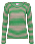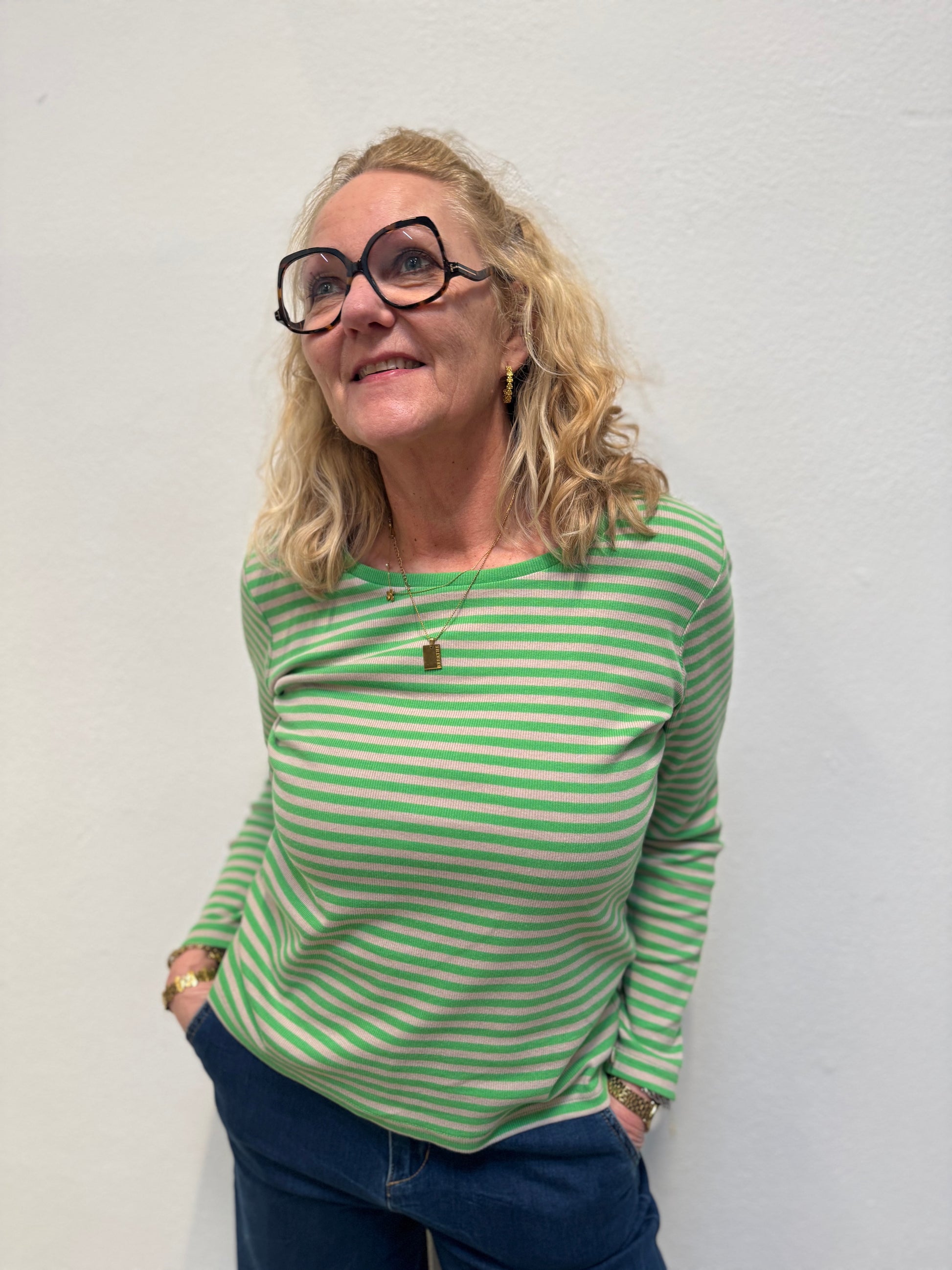 Skøn stribet t-shirt i den lækreste bomuldskvalitet kan pifte et hvert outfit op. Den har lange ærmer og en rund hals, der pænt afsluttes med en lille rib kant.