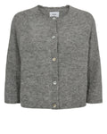 Denne lækre strikcardigan i den blødeste kvalitet er et must have i garderoben. Strikken har en flot rund bølget hals og de smukkeste perlemors lignende knapper.