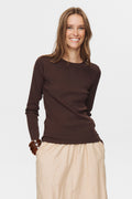 Skøn ribbet t-shirt i den lækreste bomuldskvalitet kan pifte et hvert outfit op. Den har lange ærmer og en rund hals, der pænt afsluttes med en lille rib kant.