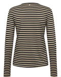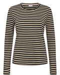 Skøn stribet t-shirt med en sart metal tråd i den lækreste bomuldskvalitet kan pifte et hvert outfit op. Den har lange ærmer og en rund hals, der pænt afsluttes med en lille rib kant.