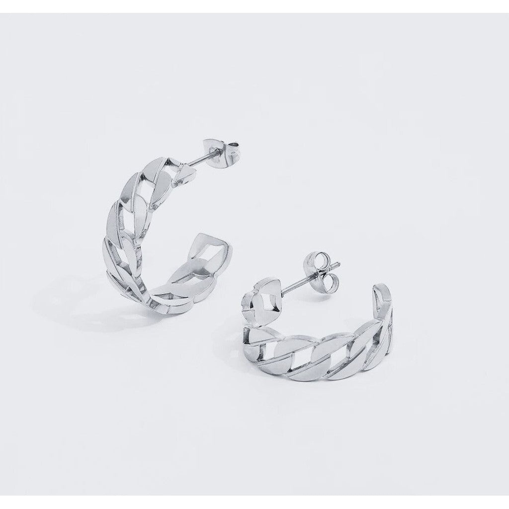 Et statement-smykke med en robust og samtidig elegant panser-link-design. Disse øreringe tilføjer en iøjnefaldende kant til dit look med deres kraftfulde struktur og strømlinede stil.